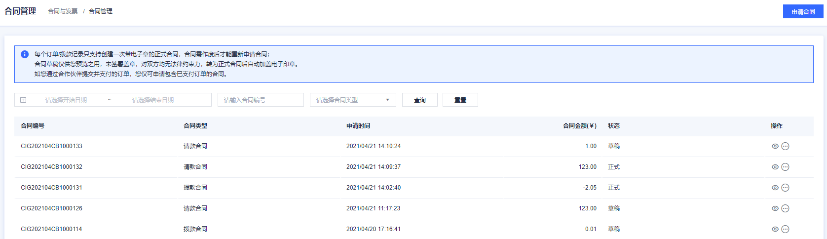 A:以企业账号为例,申请订单合同的具体步骤如下: