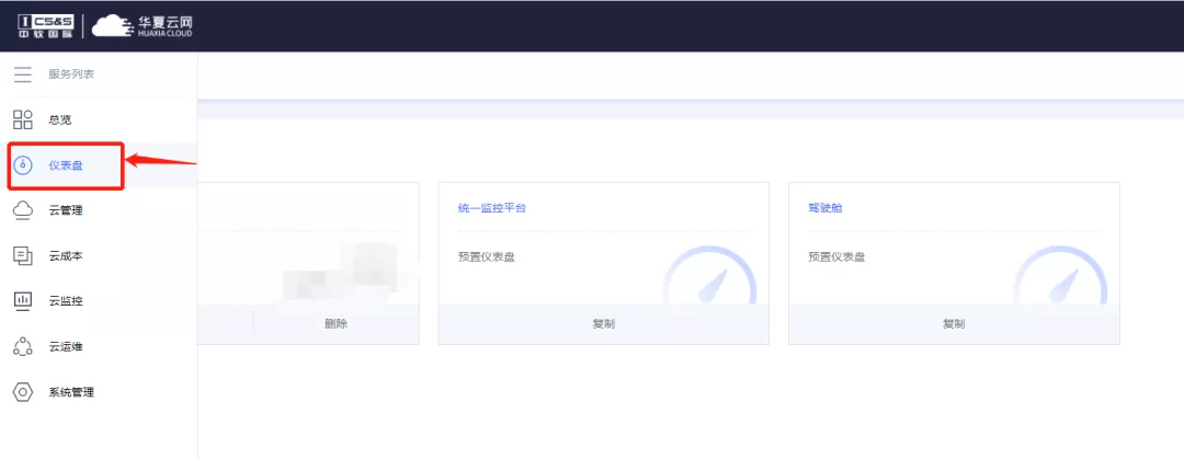 点击左侧服务列表,选择“仪表盘”,即可免费试用云管仪表盘服务啦!